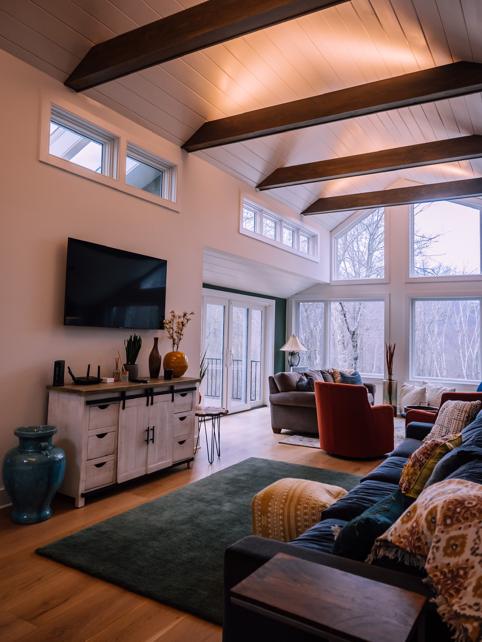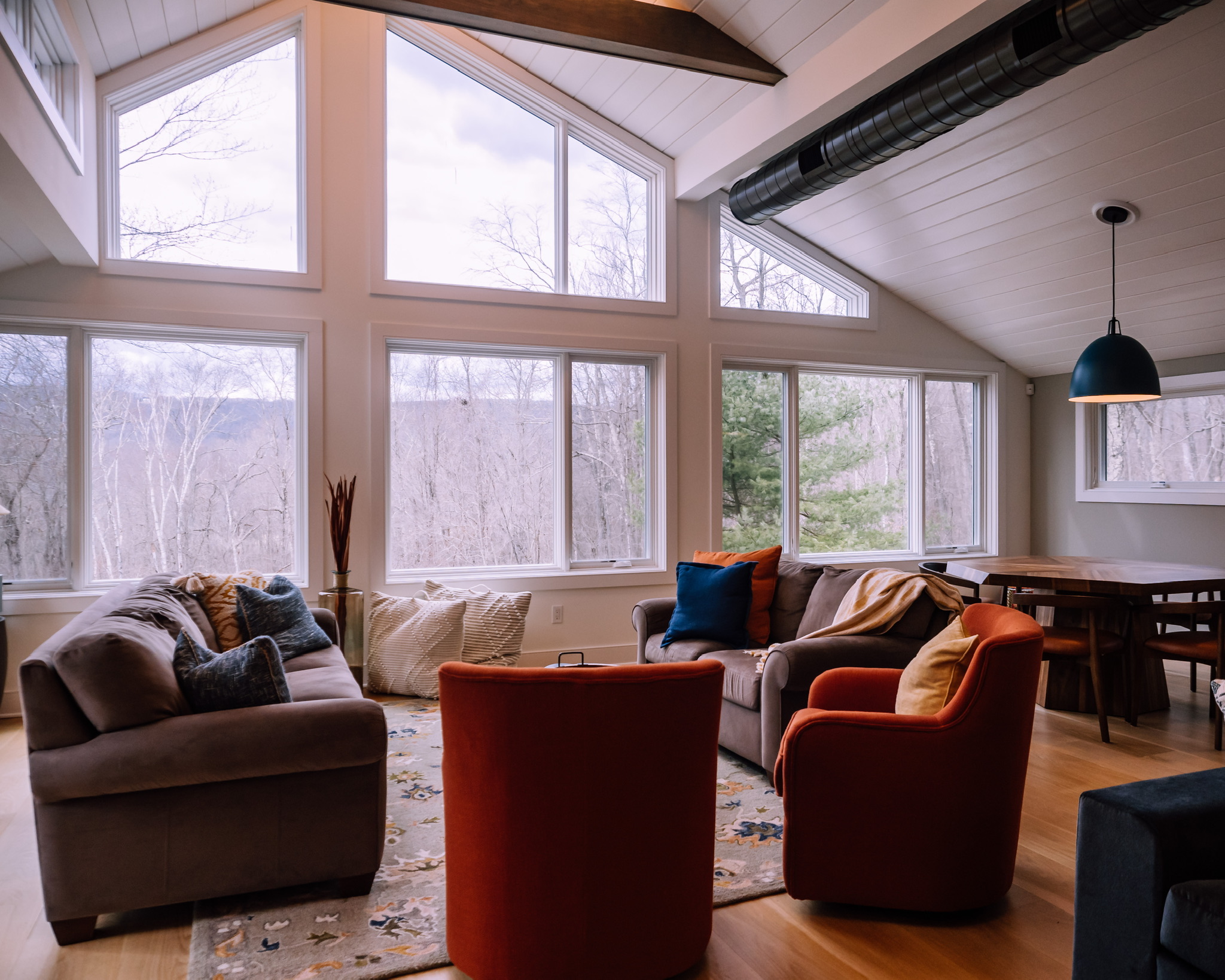 Set on 14 acres atop a hill and nestled in the forest with its own private hiking trails which abut Lake Waramaug State Park, The Perch is a respite in nature. This newly renovated, light-filled 2-bedroom, 3-bath home with additional full and king pullouts in common areas, can comfortably accommodate 8 persons. Formerly a meditative retreat, the home still provides the tranquility of its past life, while modernized for this one.